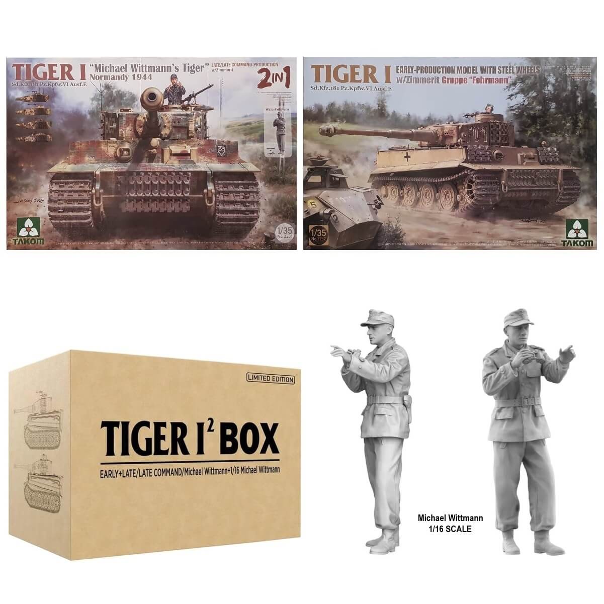1:35 Tiger I² BOX Early Late/Late Command with Michael Wittmann and 1/16 Michael Wittmann - TAKOM