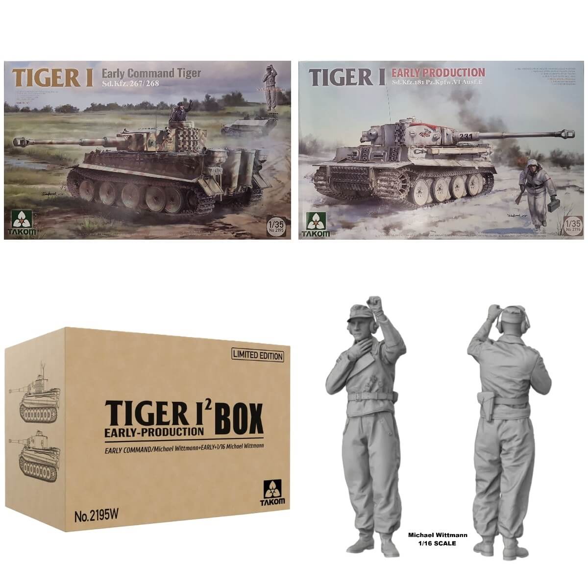 1:35 TIGER I² BOX Early Production Early Command/Michael Wittmann with Early and 1/16 Michael Wittmann - TAKOM
